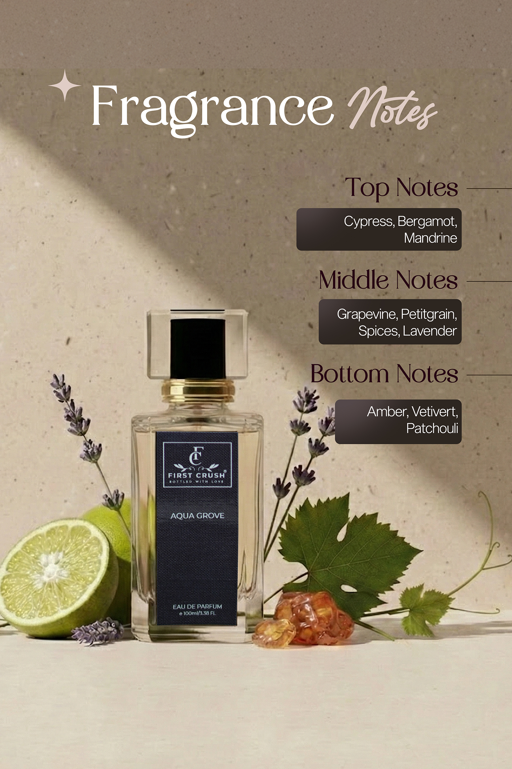 Bright citrus and crisp cypress spark the senses, giving way to a warm, spicy heart that lingers like a fleeting memory. Perfect for day-to-night wear, Aqua Grove moves effortlessly from office hours to evening soirées, leaving an impression that is confident, refined, and unforgettable.