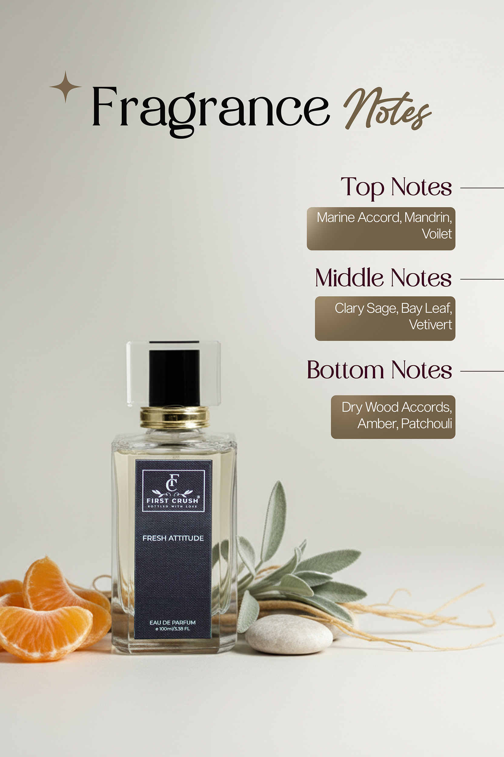 It opens with a bold spark of zesty mandarin and cardamom, just like that first electric moment your First Crush notices you. The heart unfolds with crisp verbena and aromatic clary sage, giving the same refreshing rush as a confident smile shared across the room.