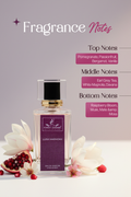 It opens with a bright splash of pomegranate, passionfruit, and sparkling bergamot, softened by a creamy hint of vanilla — playful, juicy, and instantly addictive.