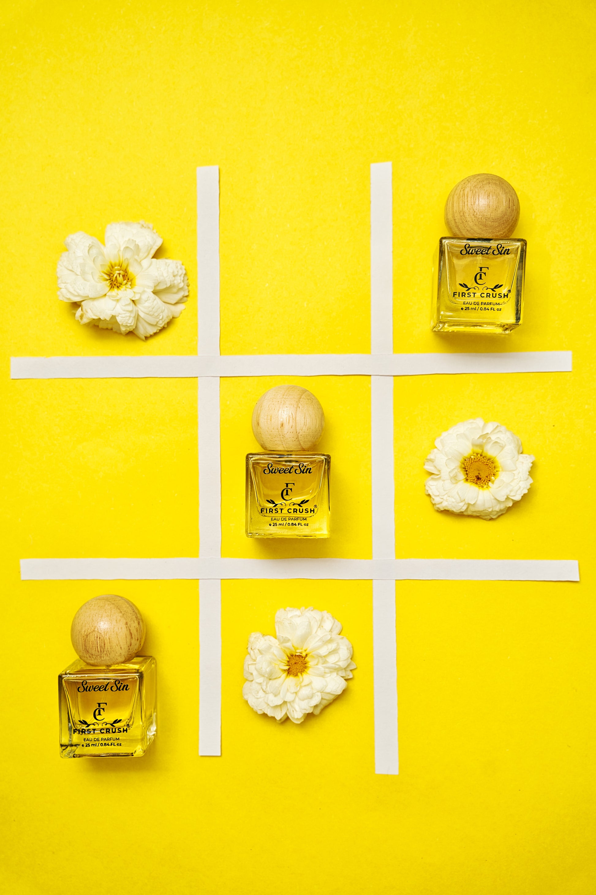 Sweet Sin opens with a clean burst of lavender and lemon—bright, crisp, and reminiscent of that first unexpected spark. The heart unfolds with patchouli blended into ylang-ylang, creating a soft, earthy floral warmth that mirrors the gentle pull of early attraction.