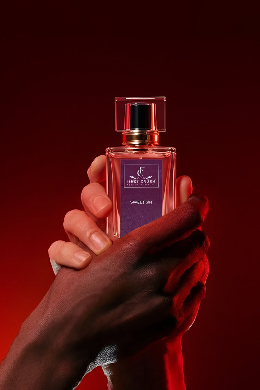 Sweet Sin opens with a clean burst of lavender and lemon—bright, crisp, and reminiscent of that first unexpected spark. The heart unfolds with patchouli blended into ylang-ylang, creating a soft, earthy floral warmth that mirrors the gentle pull of early attraction.